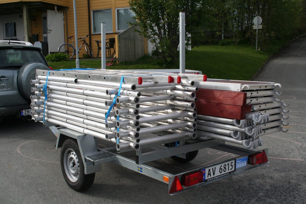 - Superenkel å frakte – hele stillasjen ligger på en henger som du hekter på bilen.